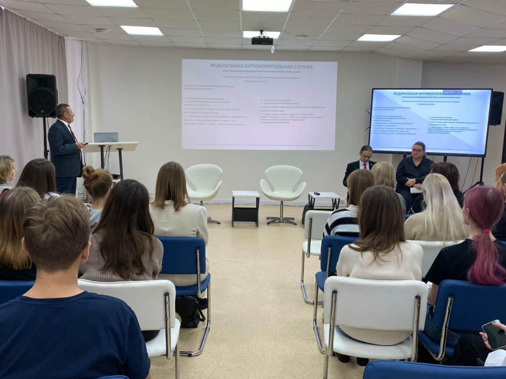 На встрече студенты узнали, что ФАС России заинтересована в молодых специалистах, занимается формированием кадрового резерва. Для выявления талантливых и перспективных работников запущен проект «Академия # Лидеры ФАС», открывающий возможности для карьерного роста. ФАС ежегодно проводит для студентов Всероссийский конкурс эссе «Точка роста», направленный на привлечение внимания молодёжи к вопросам конкурентного права и защиты конкурентной среды для создания условий, стимулирующих развитие экономики.