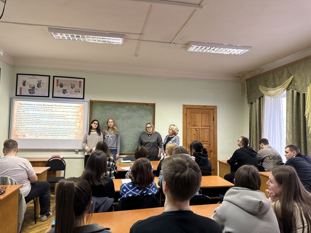 С целью повышения социальной активности обучающихся, углубления знания студентов о Великой Отечественной войне, о подвигах советских людей в военные годы проведена презентация проектов участников Межвузовского конкурса электронных проектов «Война глазами потомков Победителей» и III Конкурса исследовательских работ «История моей страны – история моей семьи», проводимых на базе Орловского государственного института культуры.