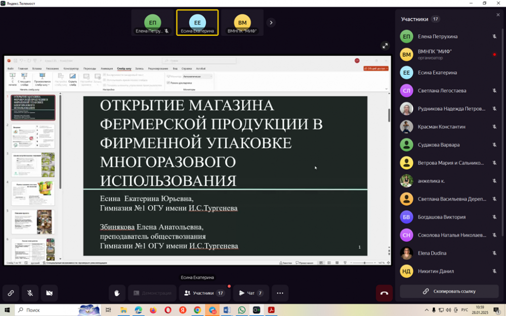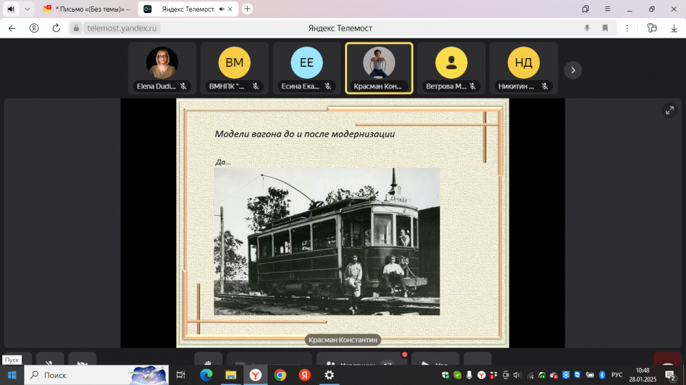 Очный тур конференции прошёл в онлайн-режиме на базе платформы Яндекс.Телемост 28 января 2025 г.