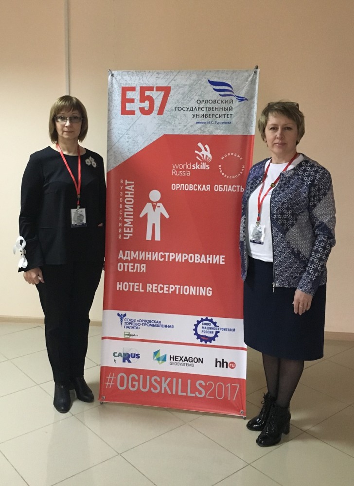 Заведующая кафедрой Петрухина Елена Владимировна была экспертом компетенции Администрирование отеля, доцент Дудина Елена Васильевна была экспертом компетенции Туризм. Доцент Барановская Ирина Андреевна в качестве наблюдателя принимала участие в соревнованиях компетенции Предпринимательство.
