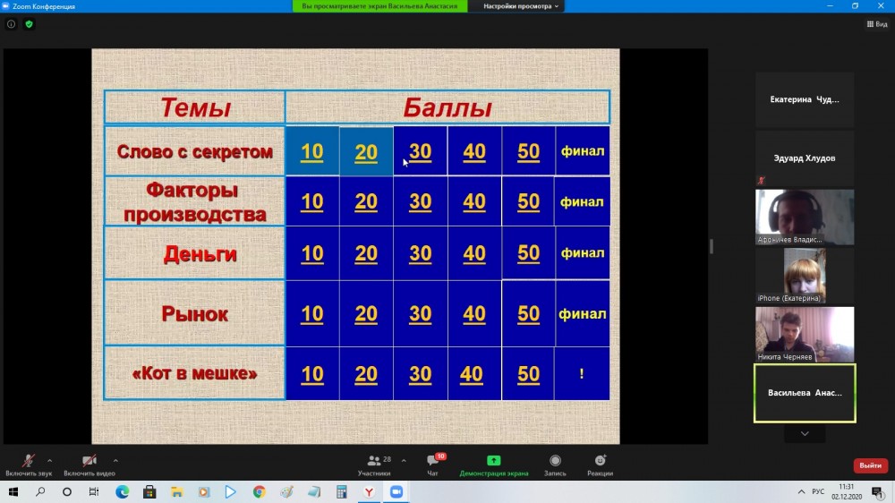 Интеллектуальная онлайн-игра «Знатоки экономики»