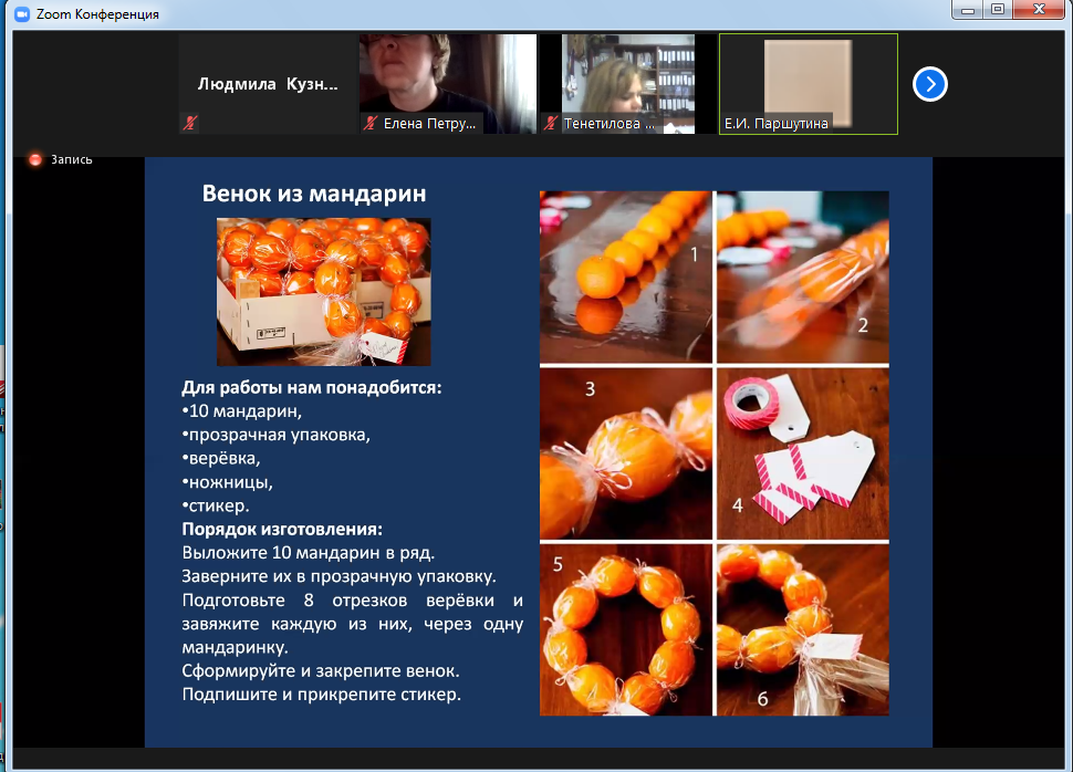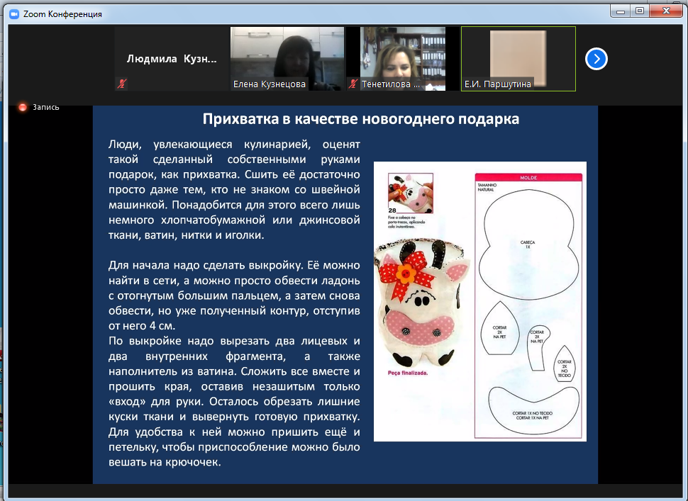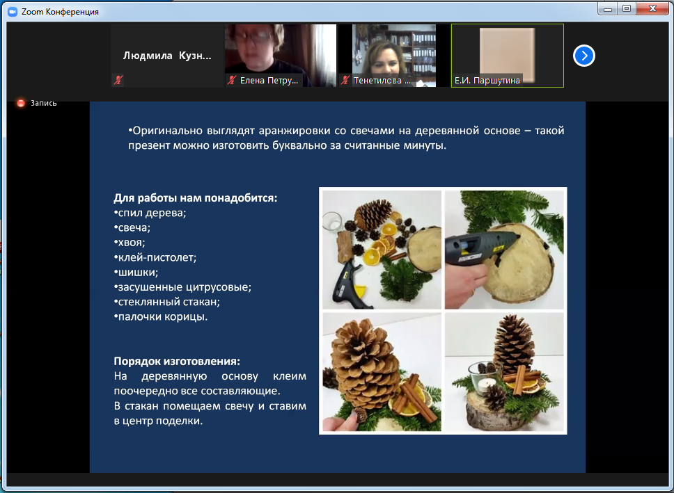 В последний день марафона свой мастер-класс «Новогодний сувенир» демонстрировала кафедра технологии и предпринимательства. Завидующий кафедрой Валентина Сергеевна Тенетилова была модератором мероприятия. Её помощниками выступили студенты кафедры.