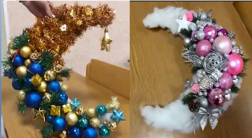 Далее студентки кафедры в прямом эфире Маслова Яна и Рыманова Яна продемонстрировали мастер-класс по созданию рождественского венка в виде месяца. Они подробно продемонстрировали всю последовательность выполнения века, комментируя все свои действия, тем самым рассказав все секреты выполнения данного сувенира. После этого каждый желающий с лёгкостью сможет повторить такой сувенир.