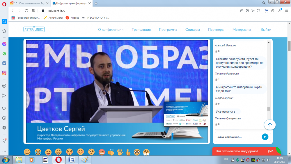 08 апреля 2021 года преподаватели кафедры технологии и предпринимательства приняли участие в отраслевой практической конференции «Цифровая трансформация системы образования: импортозамещение в сфере IT»