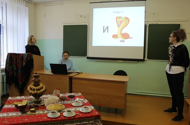 Разработанная студентами электронная презентация «Масленица: смысл, история и традиции» познакомила присутствующих с традициями и обычаями празднования на Руси этого праздника.