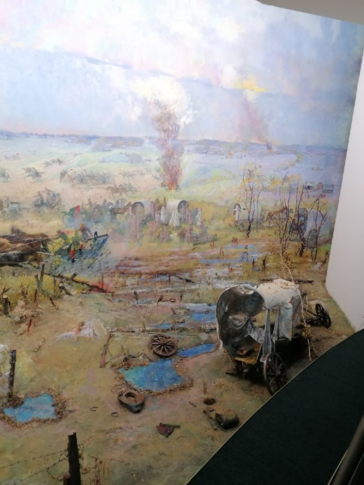Студенты познакомились с экспозицией музея, которая посвящена страницам военной истории Орловского края и участию орловцев в крупнейших военных кампаниях XVIII-начала XX века. Особое внимание уделено одному из ключевых событий в истории края — освобождению области от немецко-фашистских захватчиков во время Великой Отечественной войны. Первая диорама посвящена прорыву немецкой обороны 12 июля 1943 года на рубеже реки Зуши у деревни Малое Измайлово Новосильского района, вторая раскрывает детали сражения под Кромами осенью 1919 года в период Гражданской войны.
