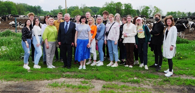 Не менее интересным стало посещение животноводческой фермы, где А.Д. Левшин ознакомил присутствующих с производственным циклом от закупки поголовья до производства молока и логистики. Обучающиеся имели возможность понаблюдать за деятельностью животноводов по уходу за крупным рогатым скотом (коровами), которые находились на выгульном дворе, а также получить новые знания и полезную информацию об основных видах работ животноводческого комплекса, необходимых затратах и их влиянием на получение прибыли, экономической эффективности производства молока.
