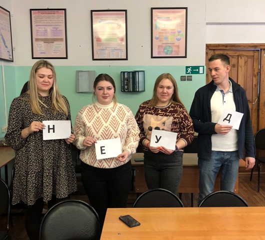 Затем провели конкурс «Студенты», в котором необходимо было на скорость, отвечая на загадки, составлять слова из букв входящих в состав слова: «студенты».