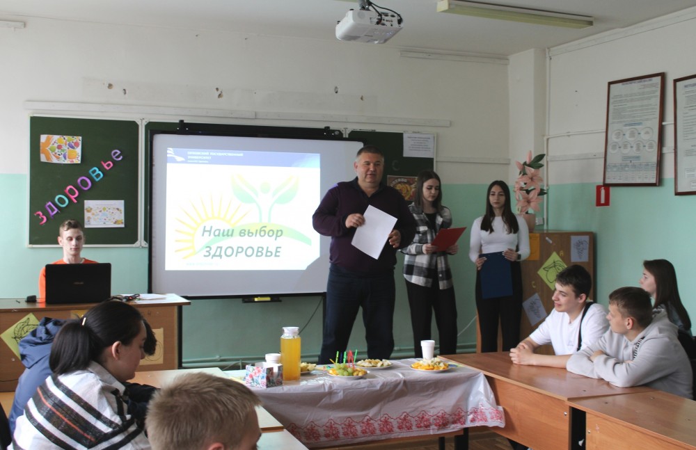 - Открытие мероприятия, со вступительным словом выступил к.б.н., доцент кафедры профессионального обучения и бизнеса Шелест А.А. о роли оздоровления общества в масштабе национальной политики, о функциях образовательных организаций в ключе создания условий для поддержания здорового образа жизни обучающихся.