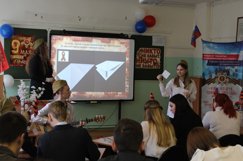 В преддверии 9 Мая преподаватели и студенты кафедры профессионального обучения и бизнеса факультета технологии, предпринимательства и сервиса провели серию мероприятий, в рамках гражданско-патриотического проекта «Память сильнее времени», посвящённые Великой Отечественной войне: