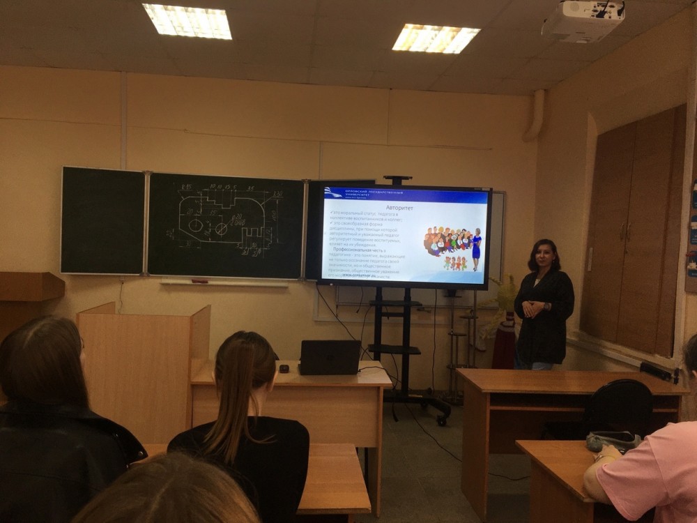В рамках открытого лектория Общества «Знание» 27 сентября 2023 года на базе факультета технологии, предпринимательства и сервиса состоялась публичная лекция «Профессиональная этика педагога» старшего преподавателя кафедры технологии и предпринимательства Романовой-Самохиной Светланы Михайловны для студентов направления подготовки 44.03.01 Педагогическое образование (профиль: Технология).