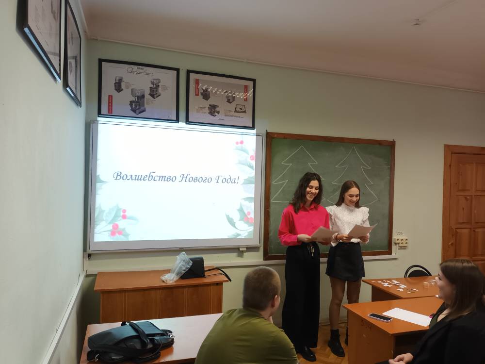 В преддверии Нового года студенты и преподаватели решили вспомнить историю праздника, традиции празднования Нового года в разных странах, а также традиции подготовки к Новому году в разных странах. В ходе увлекательной лекции беседы студенты в игровой форме, ребусов, загадок вспомнили новогодние киноленты и мультфильмы, в формате своей игры угадали новогодние мелодии, песни и музыкальные мотивы новогодних кинолент. Также вспомнили, как мы украшаем наши дома к новому году и, конечно же, какие традиционные новогодние блюда готовим на новогодний стол.