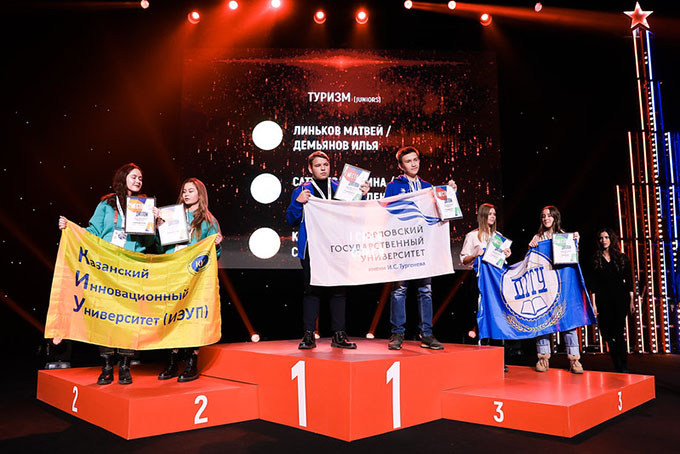 Золотыми призером в компетенции «Туризм» стали Морозова Наталия Витальевна, Сапунова Екатерина Витальевна, студентки 4 курса факультета технологии, предпринимательства и сервиса под руководством тренеров Шмаркова Михаила Сергеевича, заведующего кафедрой «Туризм и гостиничное дело» и Козловой Вероники Александровны доцента кафедры «Туризм и гостиничное дело» ФГБОУ ВО ОГУ им. И.С. Тургенева.