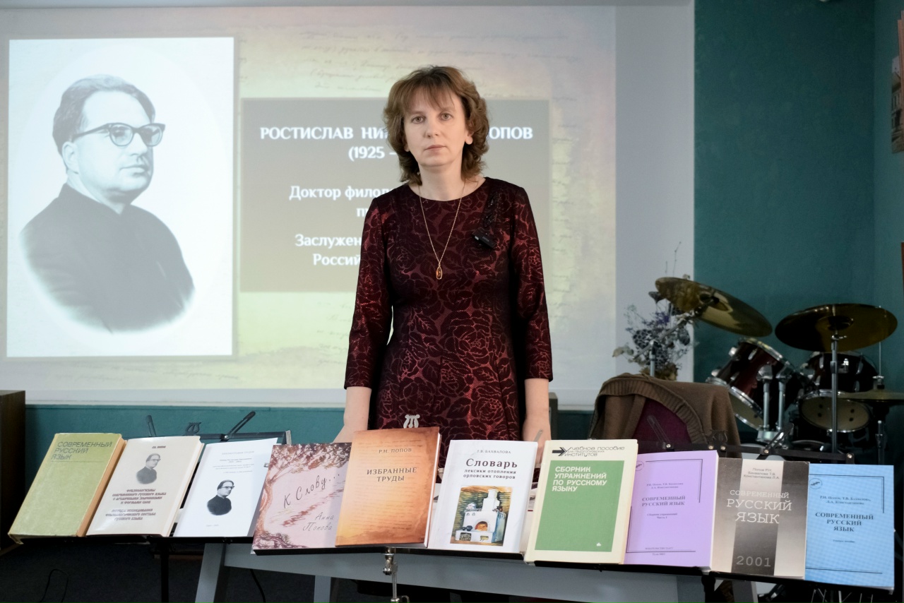 19 ноября 2025 г., в День преподавателя высшей школы, по инициативе «Музея любимой улицы» (Фонд «Духовность и культура провинции») состоялся вечер памяти доктора филологических наук, профессора Ростислава Николаевича Попова, Заслуженного деятеля науки Российской Федерации, возглавлявшего кафедру русского языка с 1974 по 2003 г. К 100-летию со дня рождения Р.Н. Попова родственники, коллеги и ученики Ростислава Николаевича подготовили мемориальную программу.