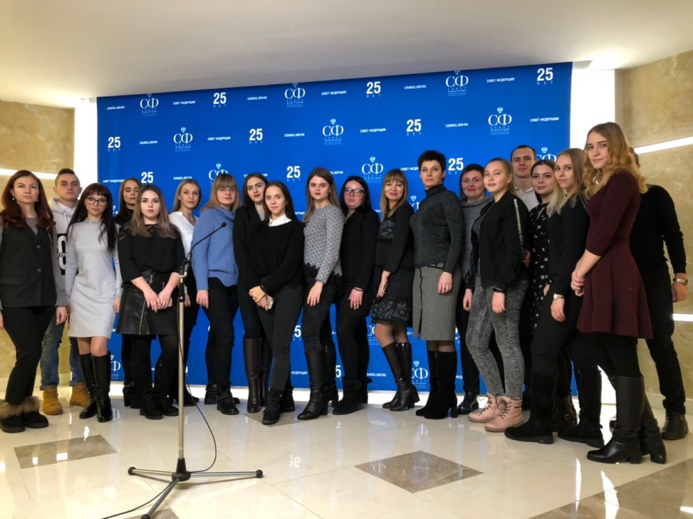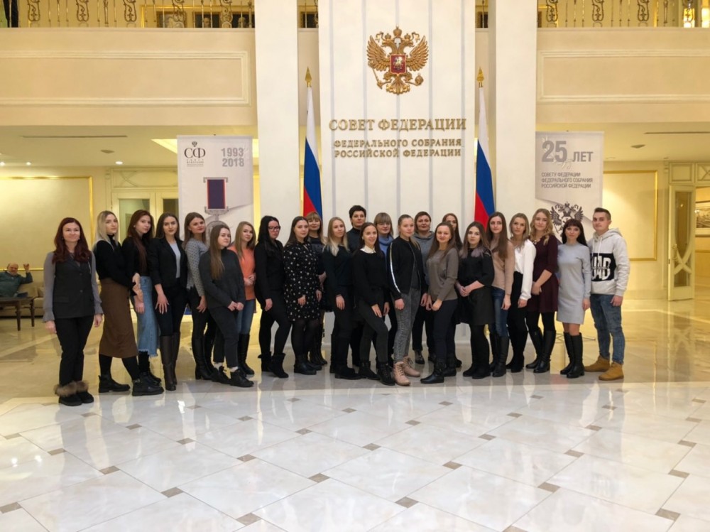 Преподаватели и студенты 4 и 5 курсов Юридического Института Орловского государственного Университета им. И. С. Тургенева 14 декабря посетили с экскурсией Совет Федерации Федерального Собрания Российской Федерации, которая была организована Пресс-службой Совета Федерации. В ходе ознакомительной экскурсии экскурсанты получили общую информацию о составе, структуре палаты, об организации ее работы. Представители пресс-службы ответили на все интересующие вопросы и рассказали проводимых мероприятиях, о работе с общественностью, о брифингах и телемостах, о взаимодействии с представителями регионов. Данное мероприятие явилось прекрасным подарком для студентов к Новому 2019 году.