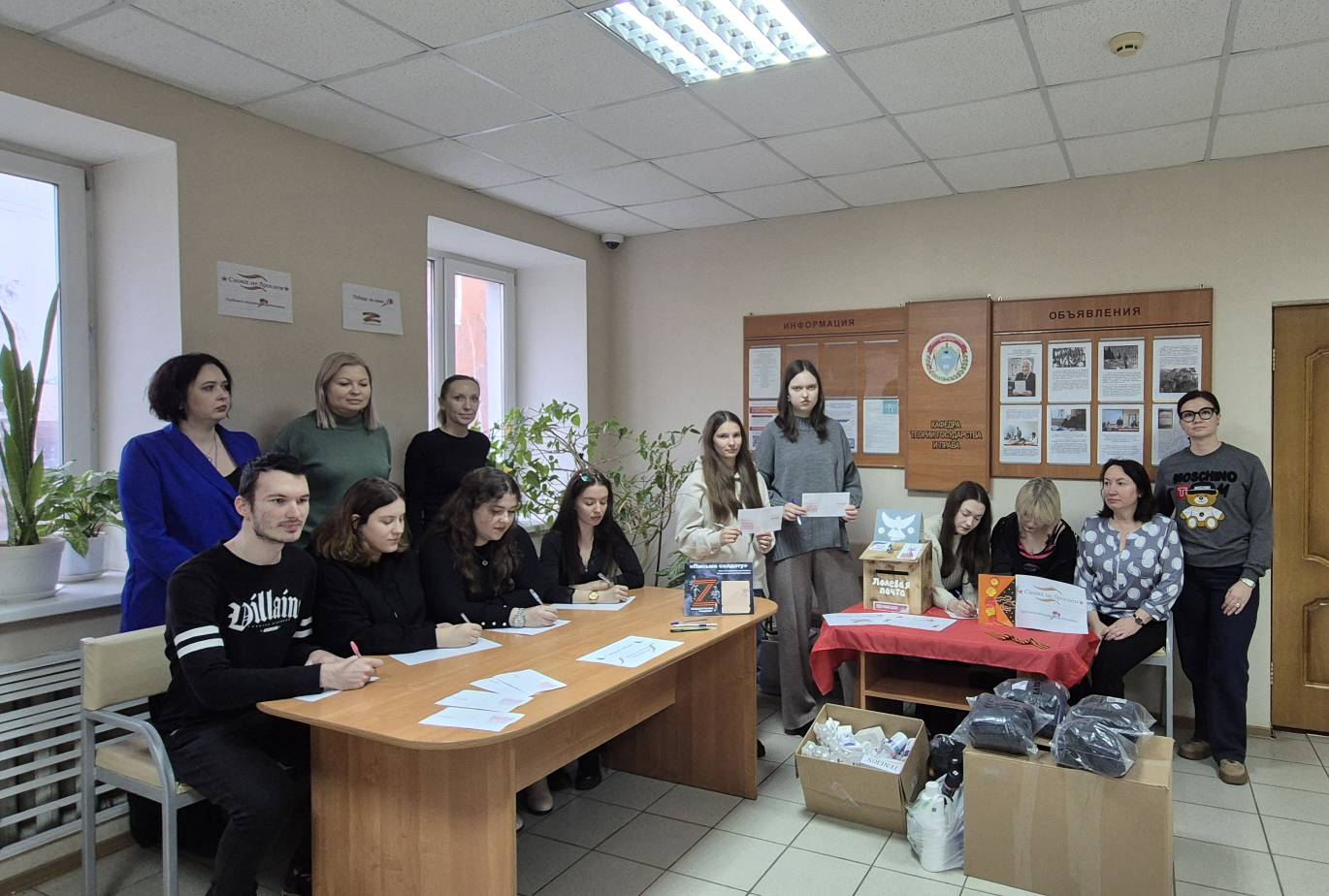 В рамках акции «День единых действий» были организованы пункты сбора гуманитарной помощи и плетения маскировочных сетей для военнослужащих — участников специальной военной операции. Каждая переданная вещь — это частичка нашей заботы и поддержки.