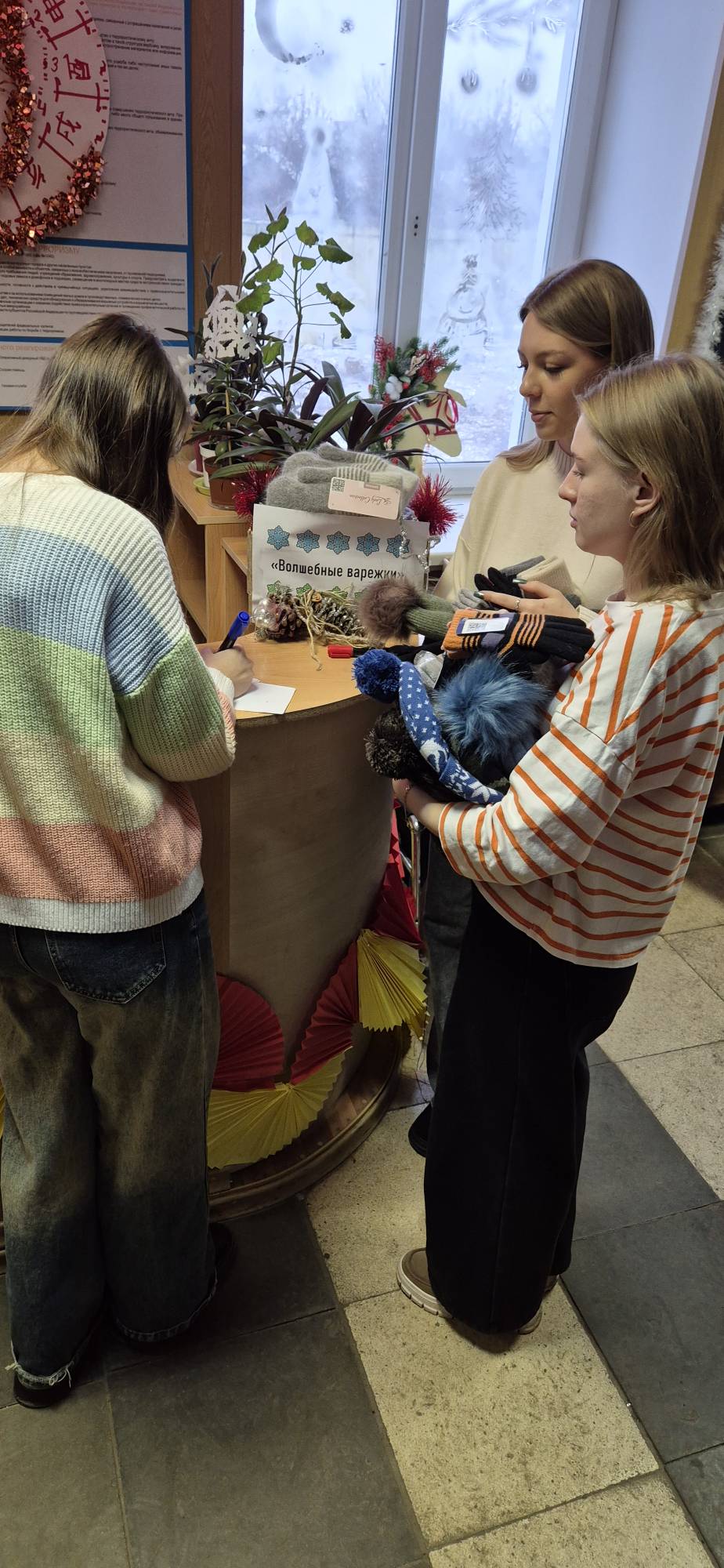 В холле института работал специальный пункт сбора. Сюда приносили новые варежки, тёплые шапки и шарфы. К каждому подарку участники акции прикладывали открытки с тёплыми пожеланиями, написанными от руки. Инициатива была реализована в рамках Всероссийской акции "Новый год в каждый дом, организованной Федеральным агентством по делам молодёжи («Росмолодёжь») совместно с Министерством науки и высшего образования РФ. Такой союз позволил придать акции системный характер и вовлечь в добровольческую деятельность студентов по всей стране. Собранные подарки доставили в Некрасовскую общеобразовательную школу, в которой учатся дети -сироты и дети, оставшиеся без попечения родителей. Акция «Волшебные варежки» стала ярким примером того, как академическое сообщество и молодёжные объединения могут вместе создавать социально значимые проекты, неся добро и веру в чудо тем, кто в этом особенно нуждается. #НовыйГодвКаждыйДом