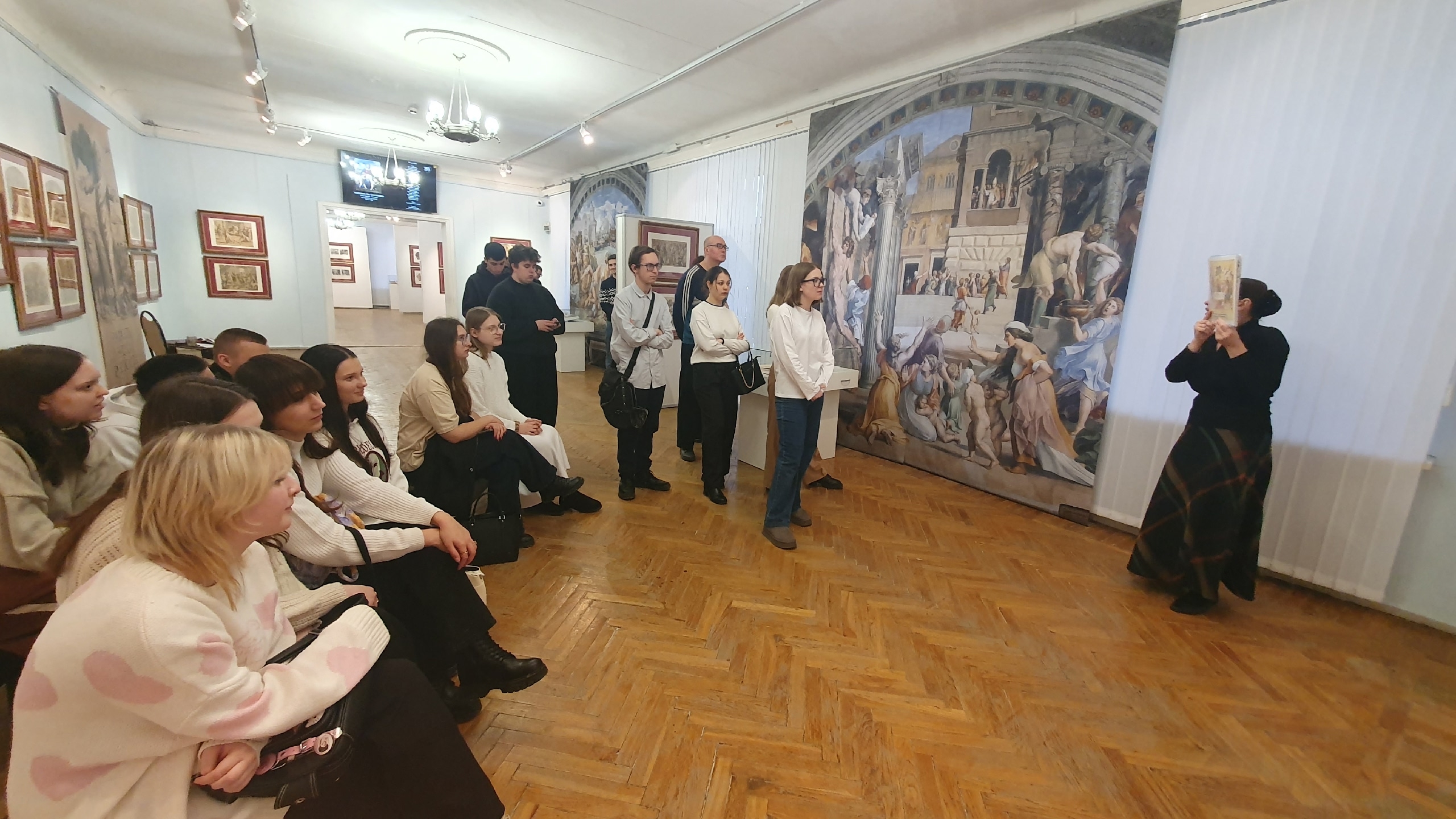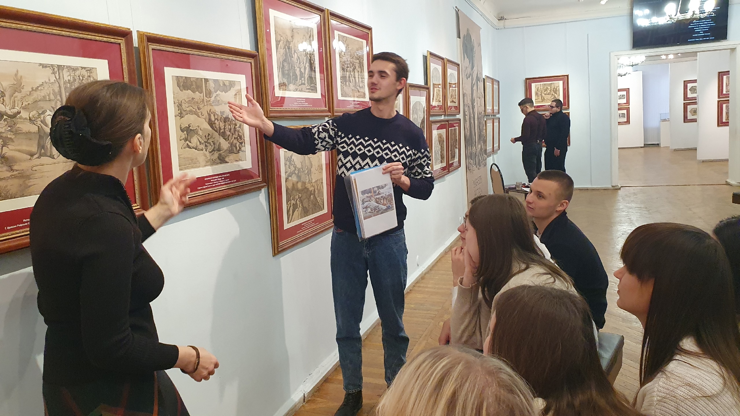 Студенты-теологи заинтересовались фрагментами фресок Рафаэля, сосредоточившись на гравюрах и литографиях на библейскую тематику, четко демонстрирующих характерную для Европы и России разницу в восприятии религиозного искусства. Будущие социальные работники отметили реалистичность библейских изображений, детализацию человеческих фигур и их живоподобность, что так не свойственно русской иконописи. Студенты-теологи Игнатов Павел и Сотников Сергей поделились своими знаниями о том, что в православной художественной традиции на первый план всегда выходило отражение внутренней духовной жизни человека. Отмечена была студентами и пространственная перспектива русских икон, сосредотачивающаяся на зрителе и включающая его во внутренний диалог с изображением.