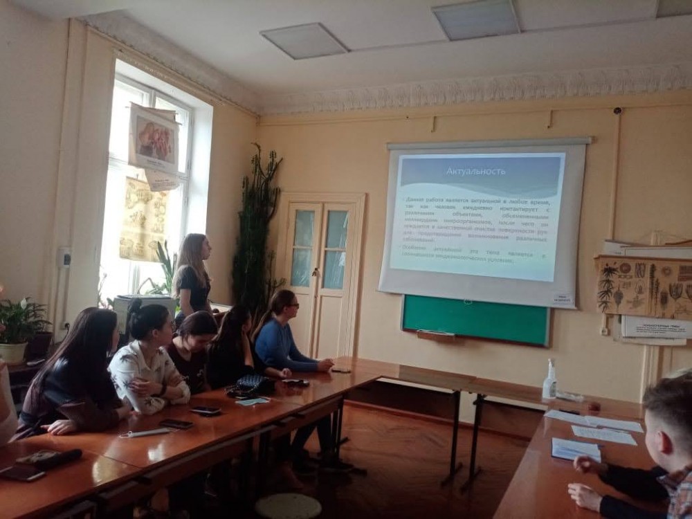 Бакалаврами и магистрантами, обучающимися по направлению 06.03.01 Биология профиль «Микробиология» , 06.04.01 Биология профиль «Ботаника» и «Биофизика», а также 44.03.05 Педагогическое образование профиль "Биология и география" и 44.04.01 Педагогическое образование профиль "Биологическое образование" были представлены устные доклады по результатам научных исследований.