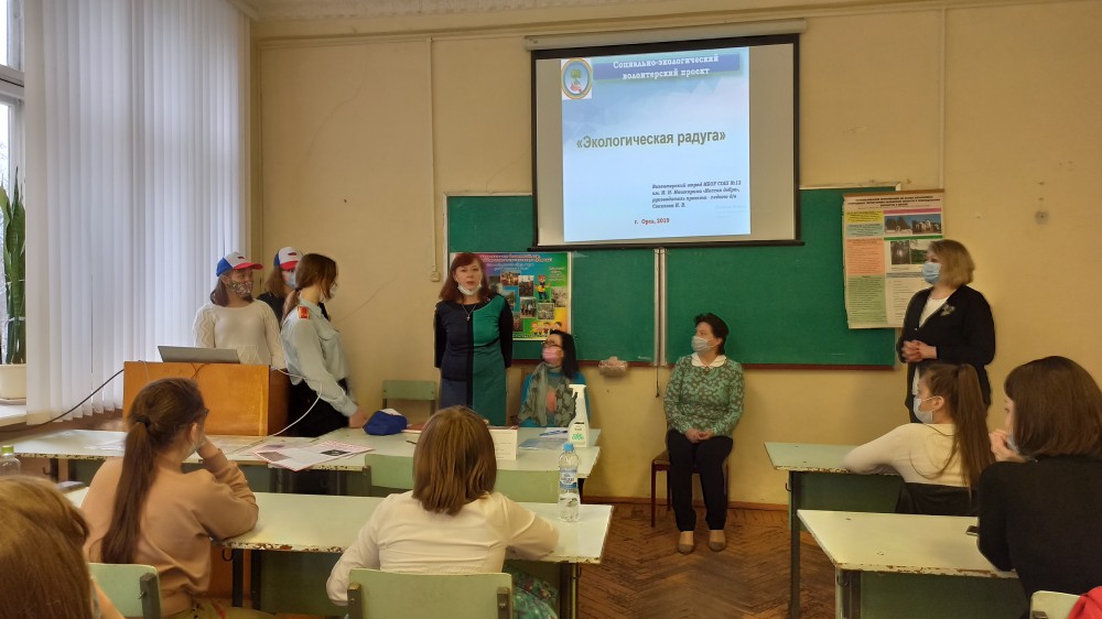 С ответным словом выступила группа волонтеров средней общеобразовательной школы № 12 имени Героя Советского Союза И. Н. Машкарина г. Орла по проблемам охраны окружающей среды. Кроме презентации учащимися были подготовлены рисунки, поделки из природного материала, прошедшие конкурсный отбор среди работ школьников. Научным руководителем и вдохновителем группы волонтеров является педагог дополнительного образования, кандидат биологических наук Ирина Васильевна Соколова.