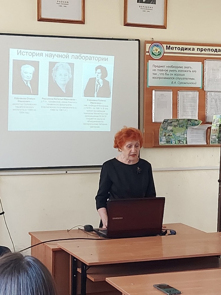 На открытии с приветственным словом к участникам обратилась председатель оргкомитета д.б.н., проф. Пузина Т.И., которая рассказала об истории создания научной лаборатории и о научном направлении "Гормональный статус растений в процессе онтогенеза». Далее свои исследования по направлению «Использование синтетических регуляторов роста в регуляции продукционного процесса растений» представила к.б.н., доц. Кириллова И.Г. С докладом о исследованиях фенольных соединений и их роли в растениях выступила к.б.н., доц. Макеева И.Ю. Научное направление «Трансгенные растения и биобезопасность» было рассмотрено к.б.н., доцентом Королем В.В.