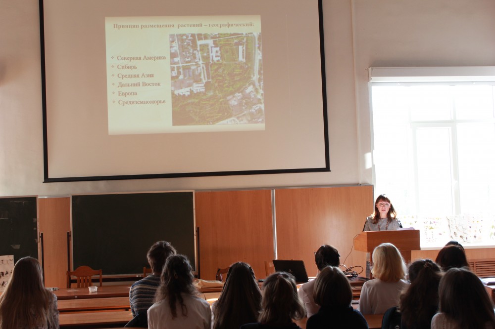 В рамках мероприятия с докладом-презентацией «Дендрарий ВНИИ СПК: история формирования и современное состояние памятника ландшафтной архитектуры» выступила к. с./х н., ст. н. с. лаборатории декоративных растений ФГБНУ ВНИИСПК Павленкова Г.А. В работе круглого стола активно приняли участие студенты-биологи 2 курса.