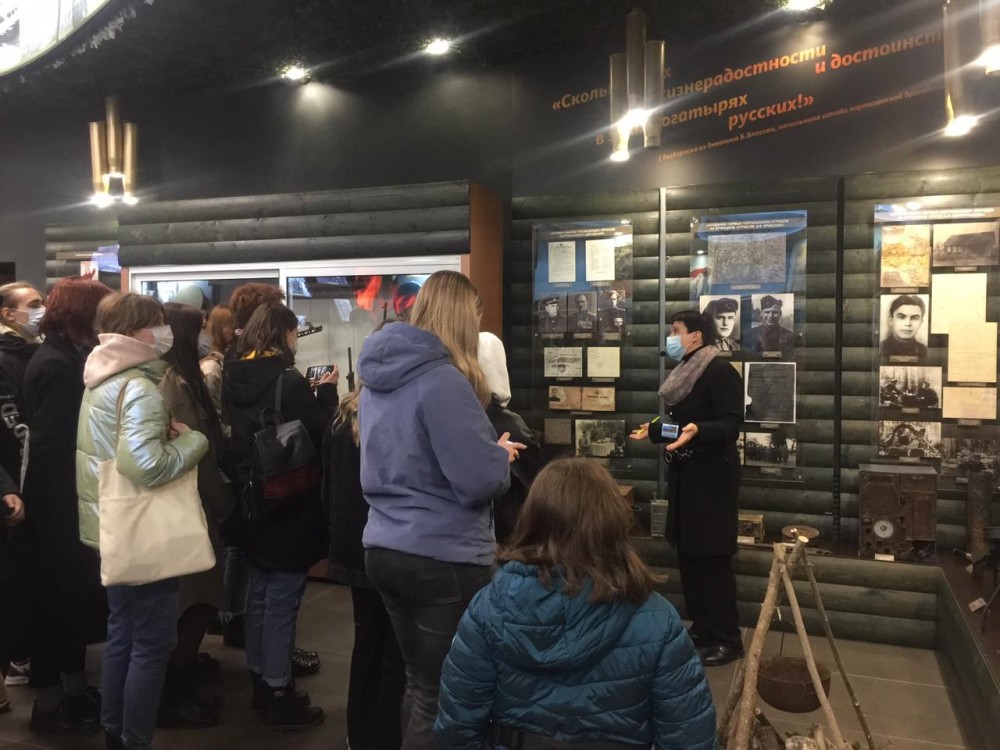 Вниманию студентов были предложены две экскурсии: по территории комплекса и в музей «История партизанского движения». Неизгладимые впечатления остались от рассказа гида о нелегкой жизни партизан, среди которых были дети и подростки. «Ничто не могло остановить жгучее желание отомстить ненавистному врагу за разоренные деревни, села, города, за убитых и зверски замученных родных и близких» – рассказывала экскурсовод – «Все партизаны, при вступлении в отряд, давали клятву: «Мстить врагу, несмотря ни на что!», при этом каждый из них понимал, что фашистские нацисты не пощадят ни самих партизан, ни их родных».
