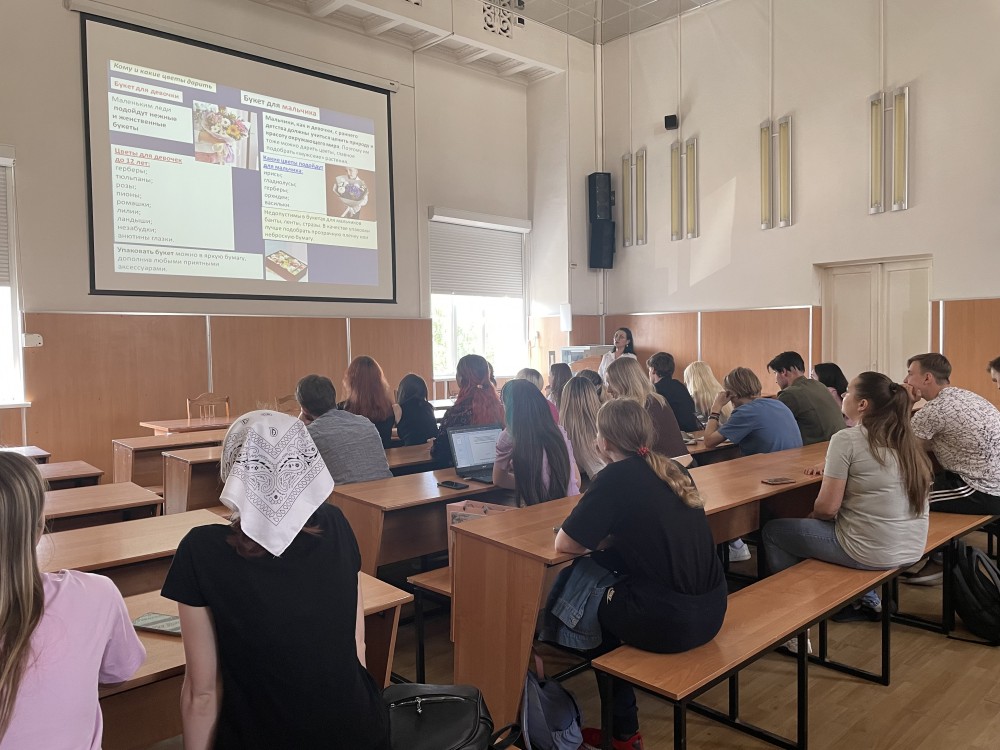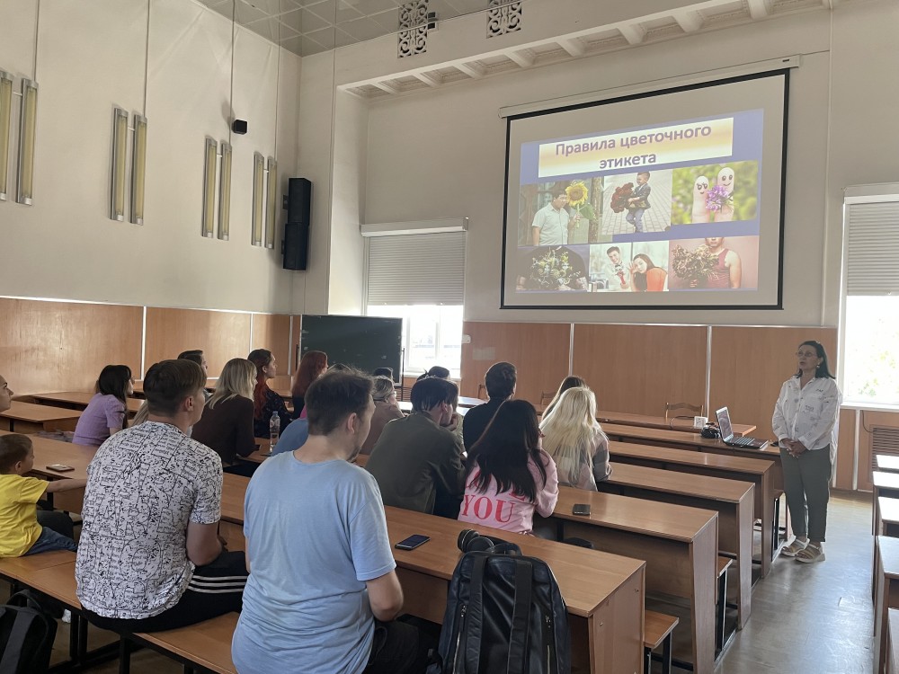 13 июня 2023 года для студентов-биологов 1 и 4 к и магистрантов 2 курса профиля Ботаника института Естественных наук и биотехнологии ФГБОУ ВО «ОГУ имени И.С. Тургенева» в рамках открытого лектория Российского общества «Знание» выступила Нина Михайловна Державина, профессор кафедры ботаники, физиологии и биохимии растений с лекцией — презентацией на тему «Правила цветочного этикета».