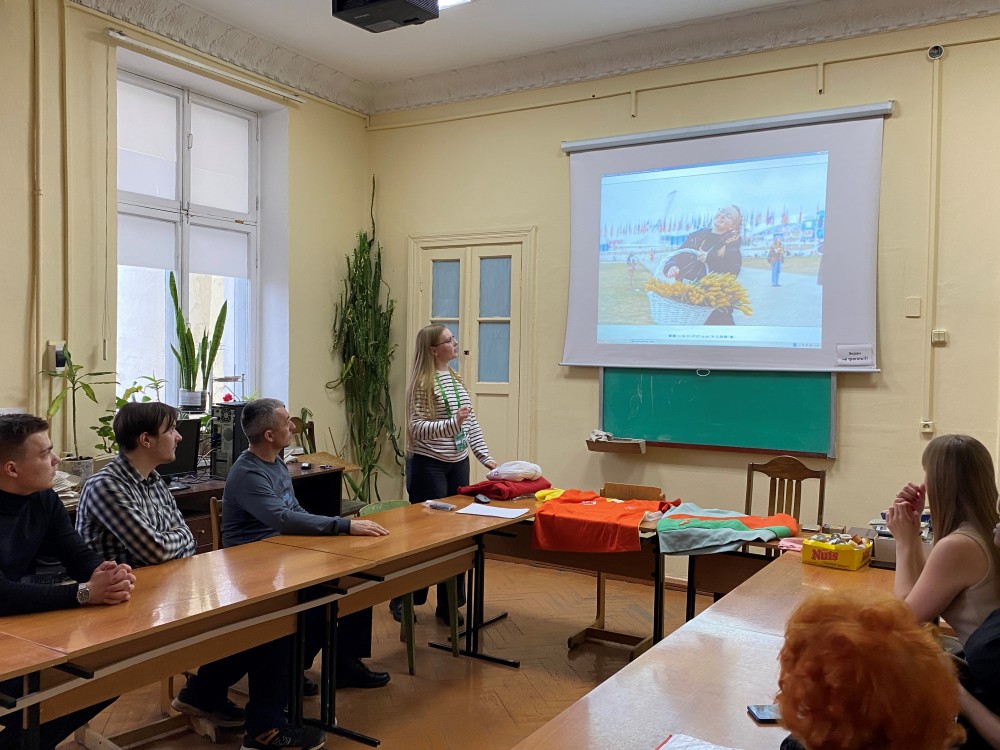 С показом видеоматериалов с фестиваля молодежи выступила магистрантка первого курса Легченко Ульяна. Она рассказала о программе и участниках Всемирного фестиваля, познакомила с деятельностью волонтеров, проинформировала об итогах фестиваля. Участниками круглого стола были заданы вопросы. В заключении обсудили значимость проведения Всемирных фестивалей.