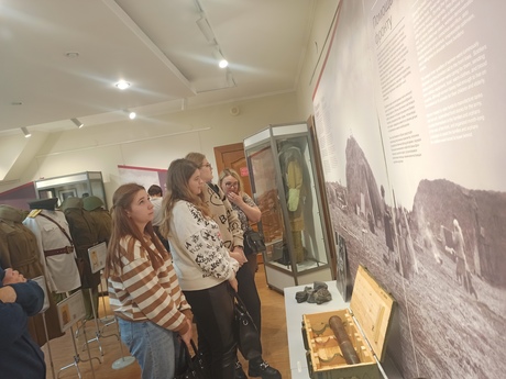 Студенты групп 11 Пч и 01 Бг, а также их кураторы на выставке, посвященной женщинам, которые в годы Великой Отечественной войны встали на защиту страны в один строй с мужчинами, познакомились с экспозицией, представленной уникальными предметами периода Великой Отечественной войны, фотографиями и документами.