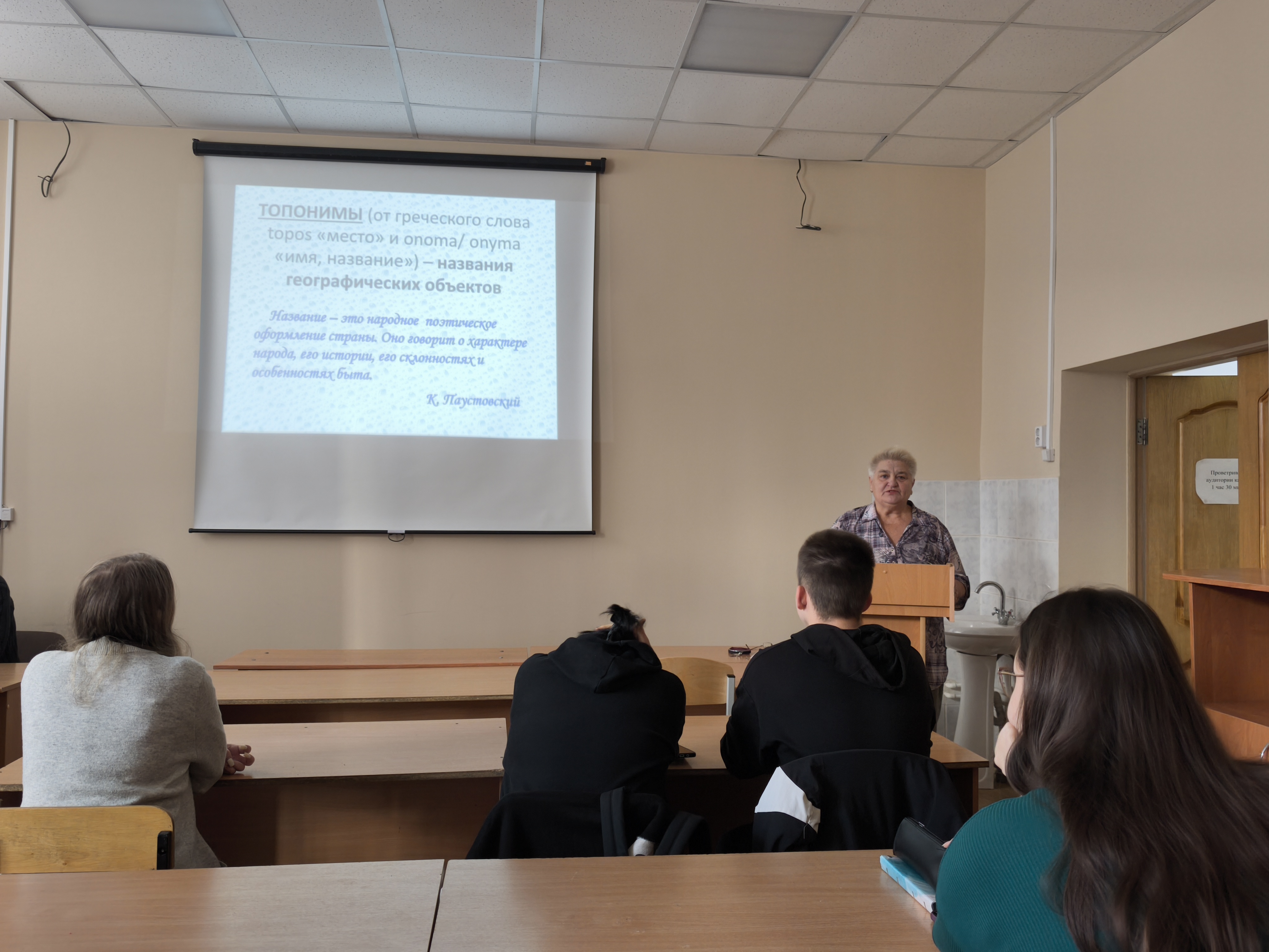 Топонимика - комплексная наука и развивается, прежде всего, на стыке географии, лингвистики и истории. Изучение и сохранение местных топонимов - надежный путь к раскрытию новых страниц географии и истории родного края, которые не дают потерять связь поколений и дают дополнительную информацию о географии, истории и жизни региона. Лекция получилась очень информативной и познавательной, оставив у студентов желание подробней познакомиться с топонимикой своей «малой родины».