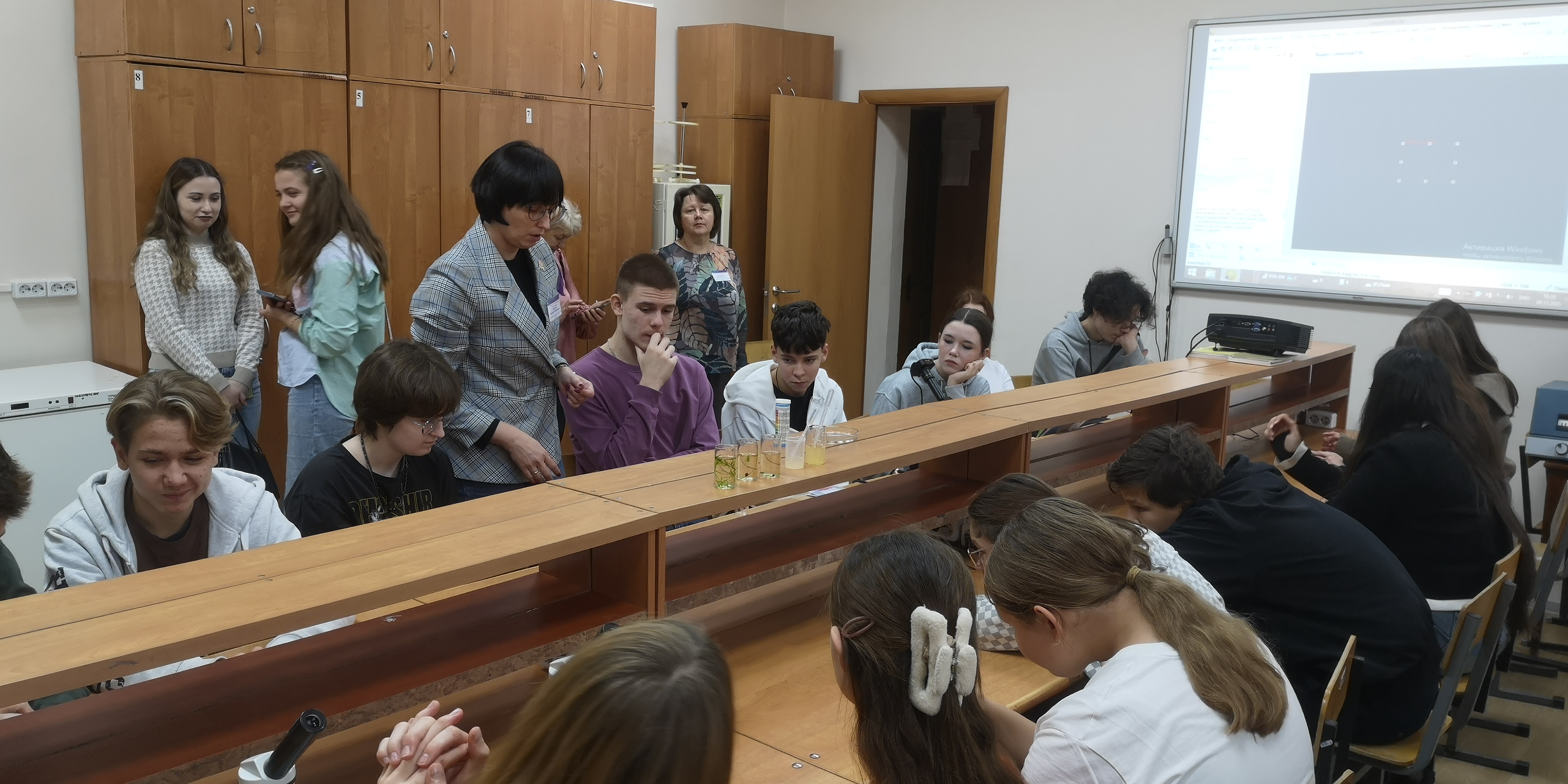 Доценты Ирина Николаевна Кондрашова (руководитель образовательной программы по направлению подготовки 05.03.06 Экология и природопользование), Надежда Владимировна Фролова и Александр Валерьевич Николаев продемонстрировали учащимся средних общеобразовательных школ и студентам первого курса медицинского колледжа доступные методы исследования некоторых параметров сред обитания.