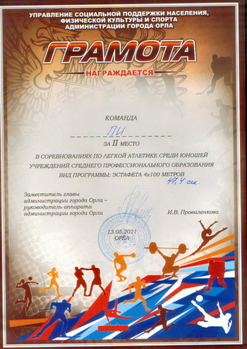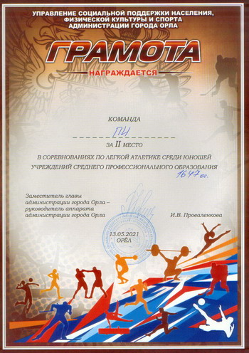 13 мая на Центральном стадионе имени В.И. Ленина состоялось Первенство города Орла по легкой атлетике среди учреждений среднего профессионального образования и высшего образования.