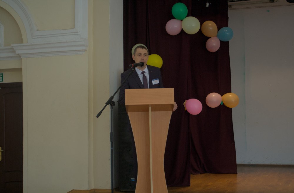 После экскурсии по корпусу декан факультета Андрей Корнеев подробно рассказал собравшимся, какие проходные баллы на разных специальностях были в прошлом году, сколько бюджетных и коммерческих мест на факультете.