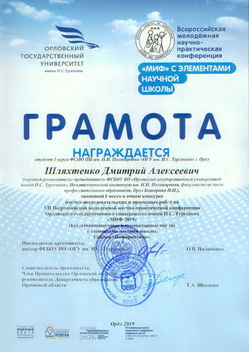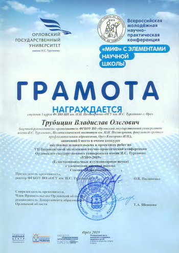 Студенты факультета среднего профессионального образования успешно выступили на VII-ой Всероссийской молодежной научно-практической конференции ОГУ имени И.С. Тургенева «МИФ-2019» (Естественнонаучные и гуманитарные науки) с элементами научной школы (5-7 февраля).
