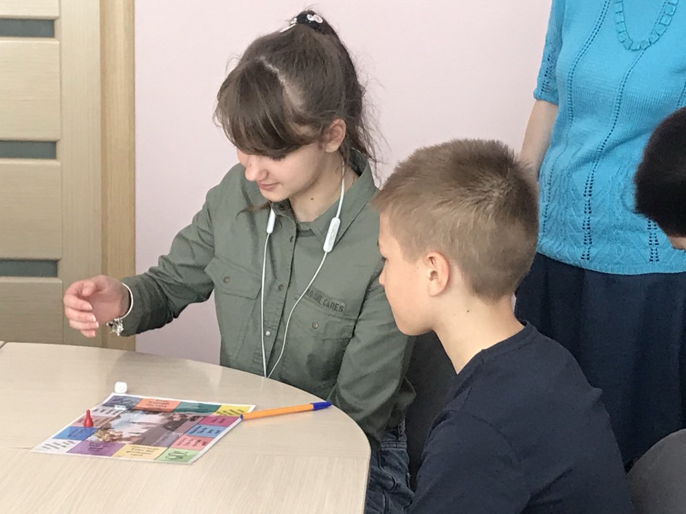 Затем школьники сыграли в настольную игру, самостоятельно разработанную студентами в рамках выполняемого ими курсового проекта.