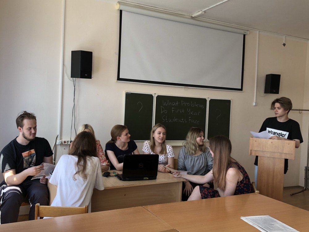 Поскольку мероприятие было организовано для студентов, изучающих английский язык как первый иностранный, обсуждение осуществлялось на английском языке, что позволило студентам не только поговорить о насущных проблемах, но и продемонстрировать языковые навыки и коммуникативные умения, приобретенные в течение первого года обучения в вузе.