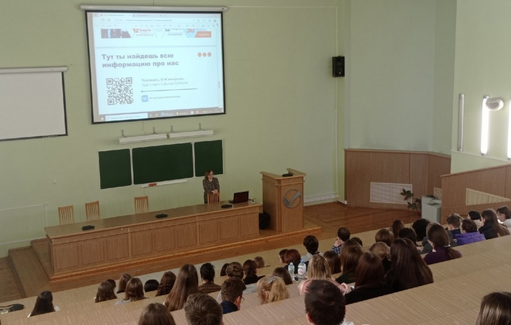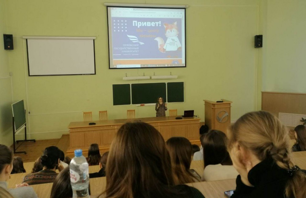Жанна Николаевна объяснила первокурсникам цели столь ранней встречи, рассказала им о помощи, которую предлагает студентам университет в построении своей карьерной траектории и в поиске места трудоустройства.