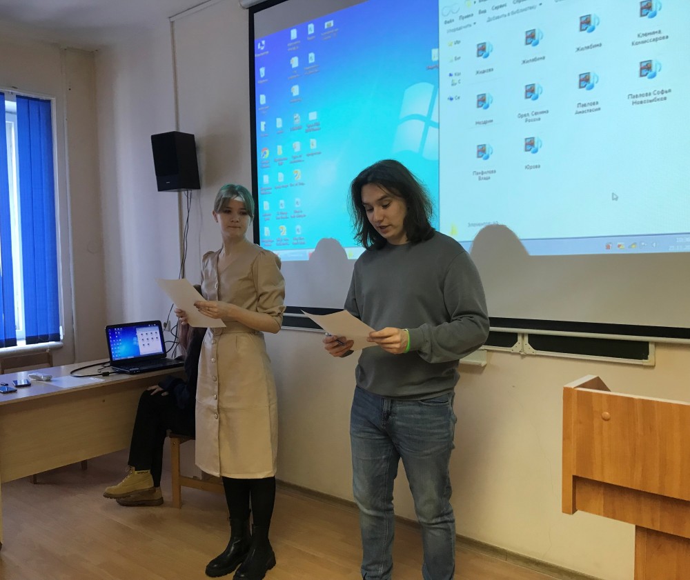 Его ведущими стали студенты группы 12 ПГО Казаков Даниил и Павлова Анастасия.