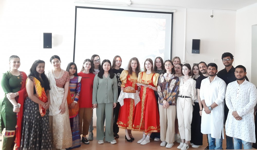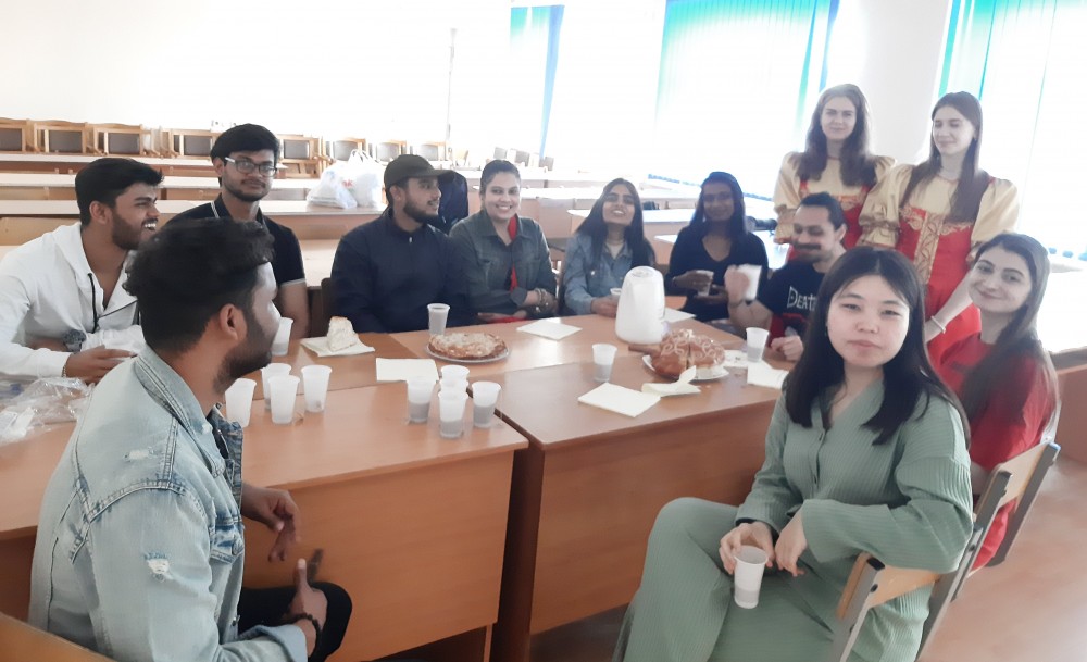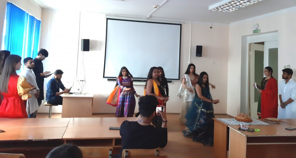 В этом году такая встреча, организованная в рамках проекта «Диалог культур», состоялась 19 мая. Институт иностранных языков стал площадкой для диалога между студентами из Индии, Ирака, Киргизстана, Армении и, конечно же, России. В мероприятии помимо студентов ИИЯ приняли участие студенты медицинского института. Программа мероприятия была насыщенной и разнообразной. Ведущие мероприятия, студентки 2 курса Жидкова Анастасия и Костюхина Ирина, встретили иностранных гостей в соответствии со старинной русской традицией – в народных костюмах и хлебом с солью.