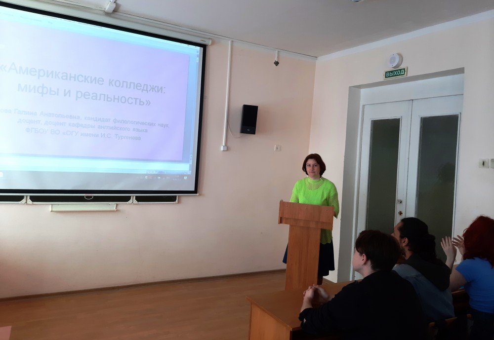 14 июня в институте иностранных языков в рамках открытого лектория общества «Знание» состоялась лекция доцента кафедры английского языка Г.А. Титовой на тему «Американские колледжи: мифы и реальность».