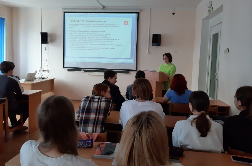Опираясь на свой опыт обучения в американских колледжах, готовящих бакалавров (Liberal Arts Colleges), лектор рассмотрел плюсы и минусы высшего образования в США, касающиеся, в частности, особенностей организации учебного процесса, системы оценивания, способов поступления и оплаты. Также наши студенты узнали о жизни американских студентов на территории кампуса, об их отношении к учебе, о взаимоотношениях внутри студенческих групп, о проблемах, с которым сталкиваются иностранные студенты.