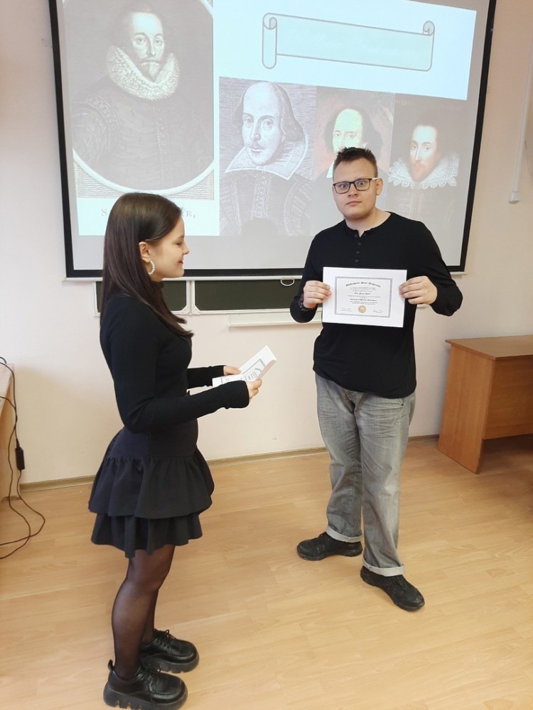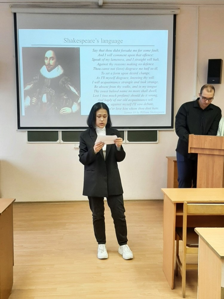 В ходе викторины студенты узнали, какими словами пополнил английский язык У.Шекспир, переводили и интерпретировали известные высказывания писателя, попробовали себя в качестве чтецов и декламировали сонеты на языке автора.