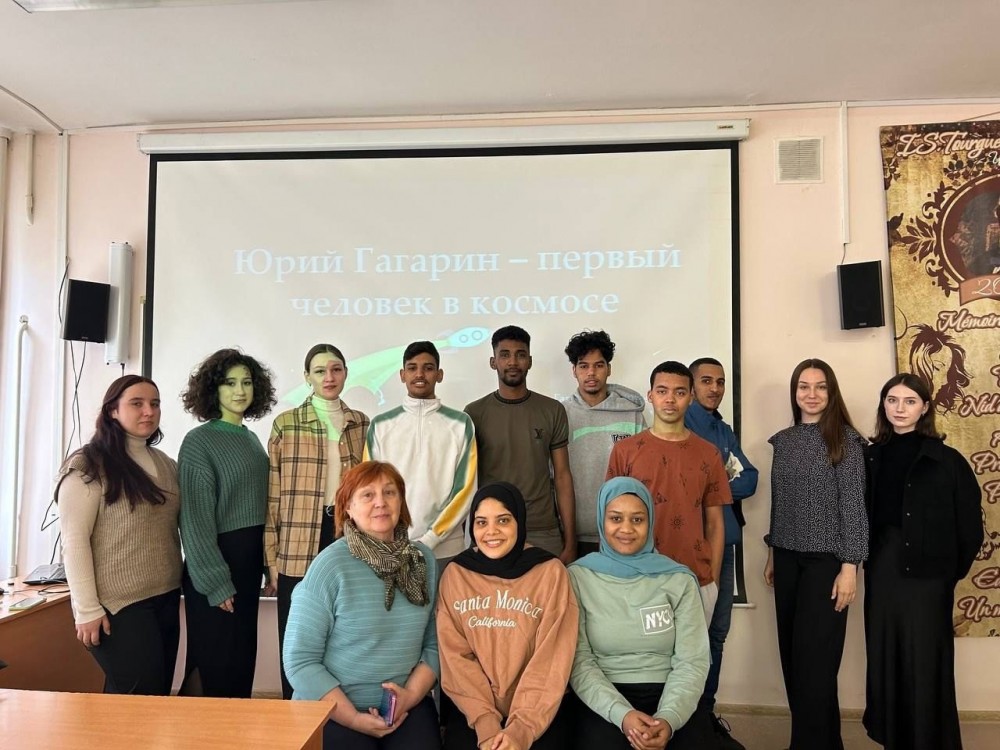 Студенты группы 21 ЛНГ провели для иностранных студентов информационное и творческое мероприятие о российской космонавтике. По словам организаторов, студенты-иностранцы были очень внимательными зрителями и слушателями и в конце мероприятия справились с квизом на 100%.