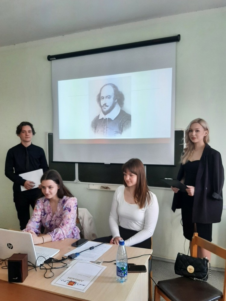 Студенты погрузились в эпоху Шекспира, узнали новые факты о его жизни и творчестве, читали отрывки из его пьес и сонеты, выполняли интересные задания на знание языка всемирно известного драматурга, поэта и писателя.