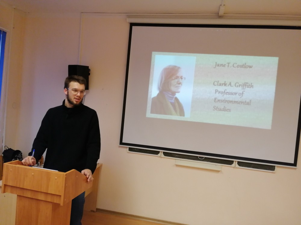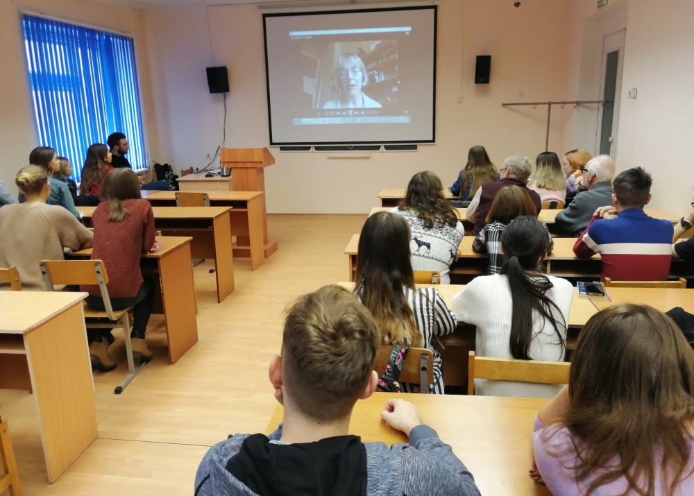 Сначала студенты прослушали обращение самой Джейн Костлоу, узнали о том, чем она занимается, что ее познакомило с русской литературой, чем привлекает творчество И.С. Тургенева.