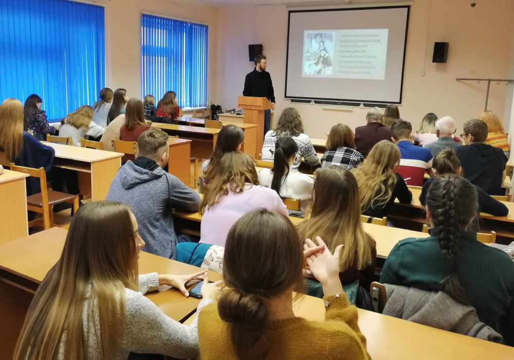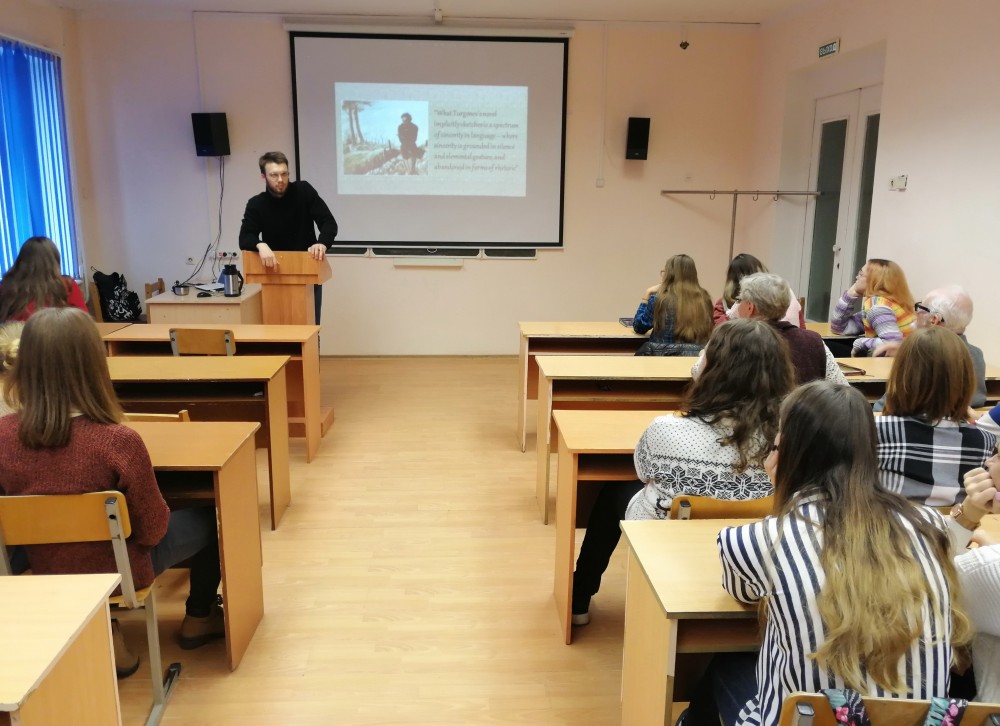 В октябре-декабре 2018 года студенты 1-3 курсов английского отделения института иностранных языков имели возможность по-новому взглянуть на творчество нашего именитого земляка Ивана Сергеевича Тургенева, а также узнать малоизвестные факты из его биографии. Такую возможность им предоставил студент 4 курса отделения английского языка Павел Киселев, который подготовил цикл лекций на тему «И.С. Тургенев и англоязычный мир».