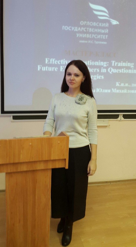 - 8.11.2019 в Институте иностранных языков прошёл мастер-класс кандидата педагогических наук, доцента кафедры английской филологии Юлии Михайловны Яковлевой, посвященный профессиональной речевой культуре современного учителя иностранного языка.