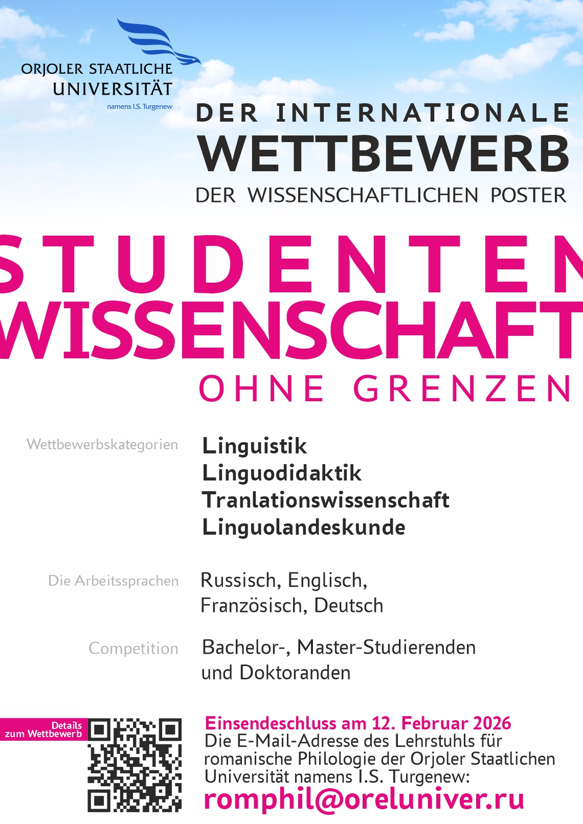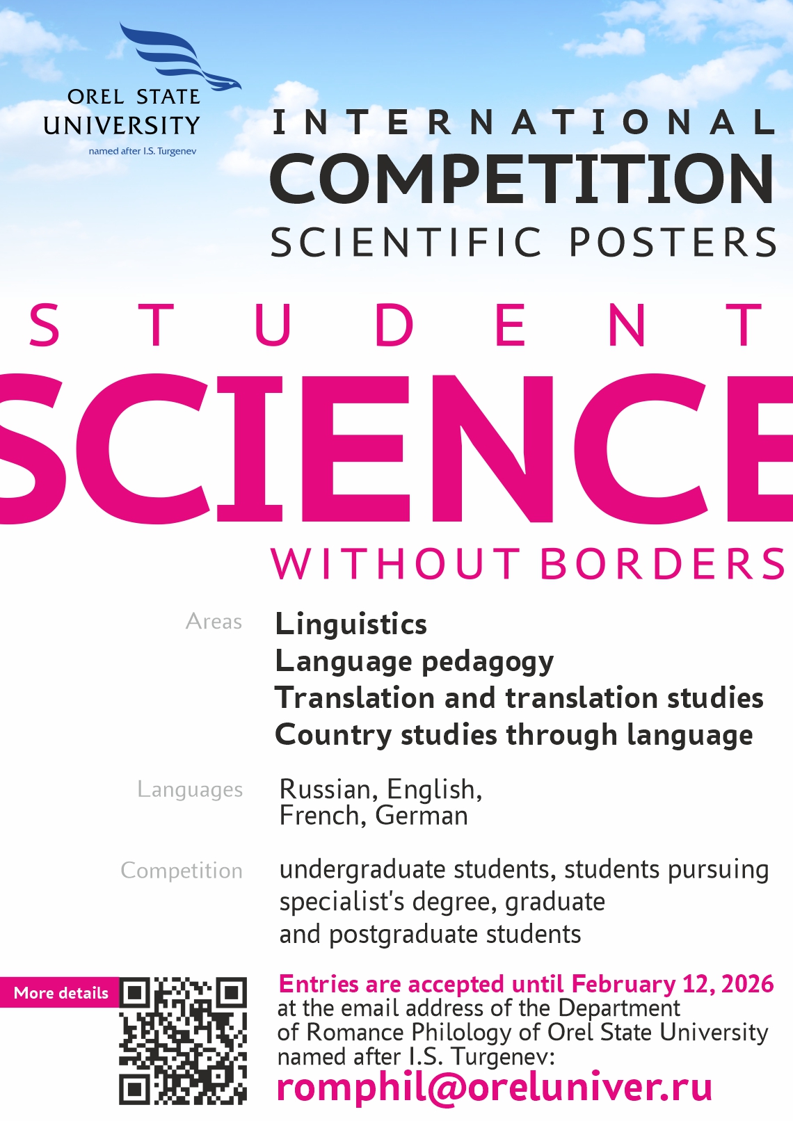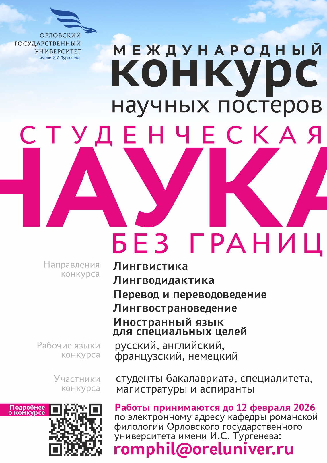 Работы подаются до 12 февраля 2026 года в электронном варианте на адрес конкурса romphil@oreluniver.ru