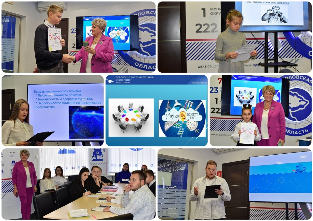 Знакомство с интересными научными изобретениями и открытиями, без которых немыслима наша жизнь, состоялось 31 октября 2024 года! Модераторами круглого стола «Наука вокруг нас» выступили О.Ю. Иванова и О.В. Пащук. Мероприятие стало частью одного из крупнейших просветительских проектов в области популяризации науки в мире – Всероссийского фестиваля «НАУКА 0+»! 24 интересных доклада было представлено участниками, в состав которых вошли учащиеся МБОУ НСОШ №1 имени Н.И. Зубилина, МБОУ СОШ №27, г. Орел, Гимназии №1 ОГУ им. И.С. Тургенева, студенты первых и вторых курсов бакалавриата института естественных наук и биотехнологий, института педагогики и психологии, филологического института, студенты первого курса магистратуры философского факультета. Как стать космическим туристом? Какой робот самый бесполезный? Почему комета алкогольная? Ответы на эти и многие другие интересные вопросы узнали участники, получив возможность расширить свой научный кругозор, познакомиться с изобретениями и открытиями в самых разнообразных направлениях научной мысли, более глубоко познать окружающий мир!
